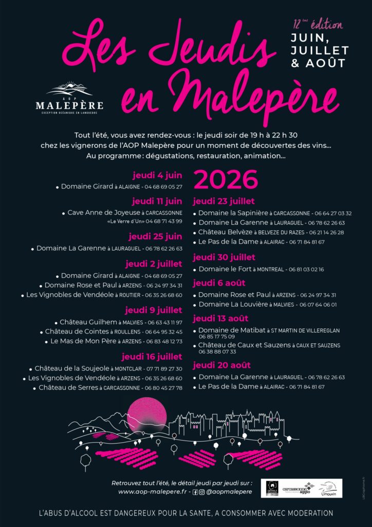Pour la première fois venez vivre les Jeudis en Malepère dès le mois de juin avec les vigneronnes et vignerons de l’AOP Malepère.